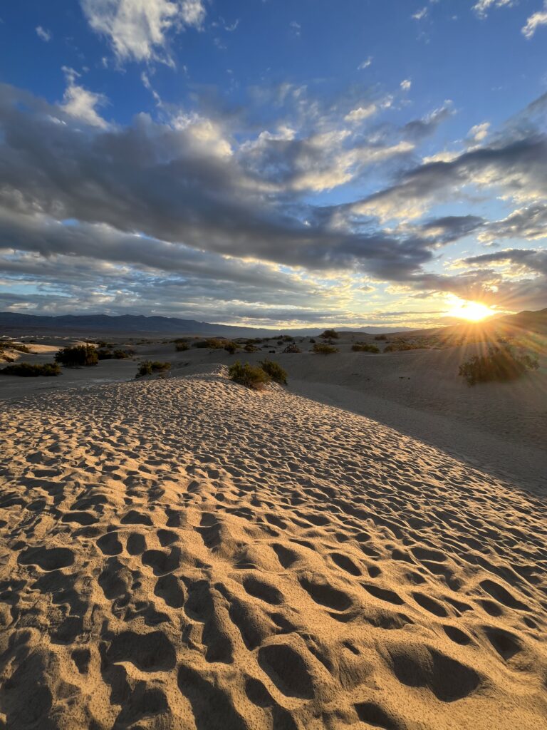 Mindful Moment: Find a “clean” dune (one with no footprints). Feel the silkiness of the sand and notice how the light changes the colors of the mountains.